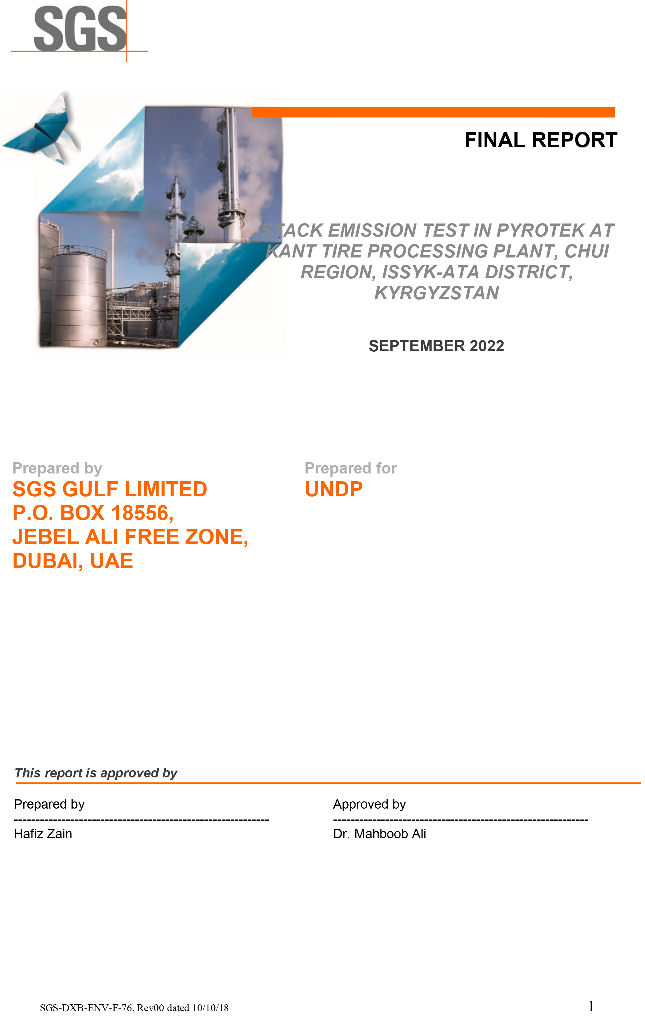 Экологически безопасное производство по выбросам в атмосферу, соответствующее международным стандартам, подтвержденное Заключением «SGS GULF LIMITED P.O. BOX 18556, JEBEL ALI FREE ZONE, DUBAI, UAE».