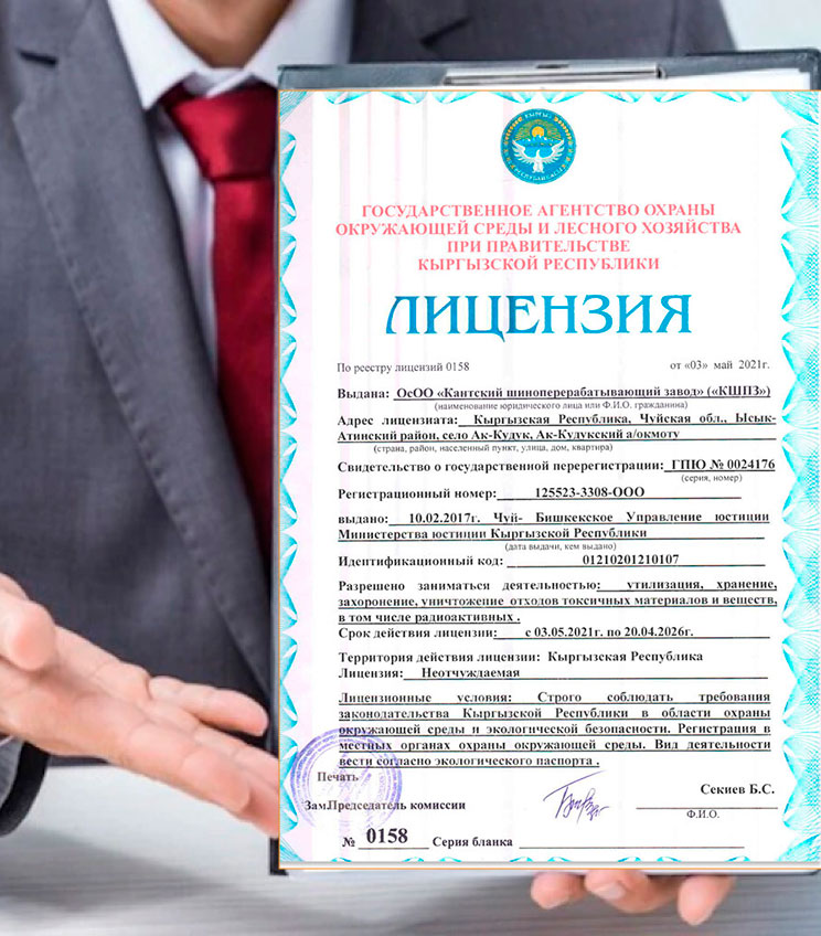 Лицензия на утилизацию, хранение, захоронение и уничтожение отходов производства, в том числе радиоактивных.